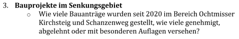 - Bauen im Senkungsgebiet ist grundsätzlich möglich. Grundstückseigentümer:innen haben hier – genau wie an anderer Stelle auch – ein Recht, bauen zu können, wenn entsprechende Gutachten vorliegen und technische Anforderungen eingehalten werden, so das Gebäude und Infrastruktur vor möglichen Schäden geschützt sind.