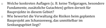 - Im aktuellen Fall beim Baugebiet im Schanzenweg ist ein geotechnisches Gutachten Voraussetzung für eine Baugenehmigung gewesen. Dieses Gutachten gibt Auskunft darüber, unter welchen Bedingungen gefahrlos gebaut werden kann.
