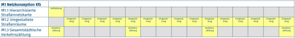 Vorrangiges Ziel des Maßnahmensteckbriefes M1 „Netzkonzeption Kfz“ (siehe hierzu NUMP-Abschlussbericht S. 47 - 49) ist daher die Schaffung einer belastbaren und differenzierten Datenbasis, etwa durch Verkehrsanalysen, Erhebungen zur Belastung einzelner Straßenzüge und eine funktionale Bewertung der Netzebenen. Diese Grundlage soll künftige Entscheidungen zu Steuerung, Priorisierung und Maßnahmengestaltung unterstützen. Für diese Maßnahme sind die benötigten Mittel mit 100.000 Euro in 2026 sowie je 300.000 Euro in 2027 und 2028 bereits im Haushaltsbeschluss (siehe VO/11459/24) vom 19.12.2024 enthalten