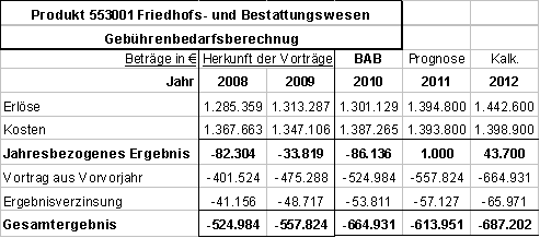 Friedhofs- und Bestattungswesen- Betriebsabrechnung 2010- Gebührenbedarfsberechnung 2012